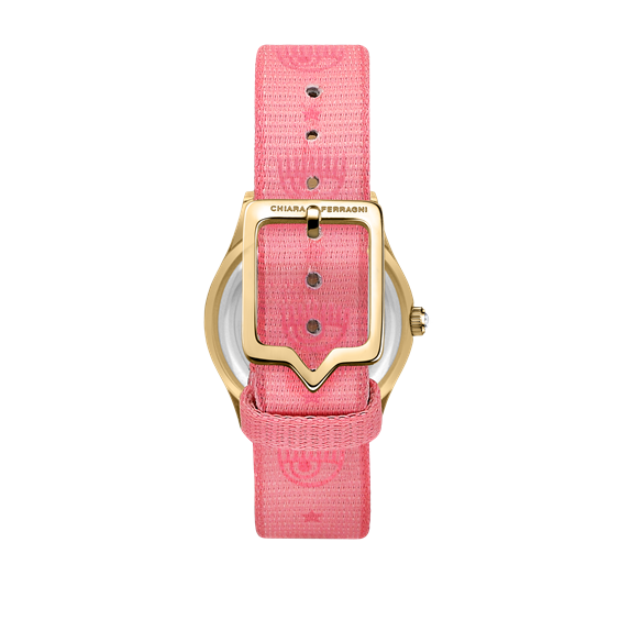 Orologio Donna Chiara Ferragni Everyday Un meraviglioso Orologio firmato Chiara Ferragni che vuole donare al tuo outfit un tocco in più nello stile della fashion blogger più famosa al mondo. Un design unico con una cassa in acciai dorato delle dimensioni di 32 mm e ghiera di zirconi e cinturino in tessuto rosa. Il movimento è al quarzo con funzione di solo tempo e resistenza all'acqua di 5 atm. Indossabile nelle diverse occasioni, dal quotidiano all'evento, porta sempre con te il marchio Chiara Ferragni, ormai uno dei brand più influenti al giorno d'oggi. Perfetto come idea regalo!