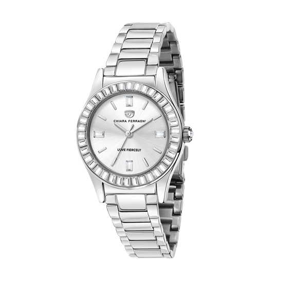 Orologio Donna Chiara Ferragni Everyday Un meraviglioso Orologio firmato Chiara Ferragni che vuole donare al tuo outfit un tocco in più nello stile della fashion blogger più famosa al mondo. Un design unico con una cassa in acciaio delle dimensioni di 32 mm e ghiera di zirconi baguette e cinturino in acciaio. Il movimento è al quarzo con funzione di solo tempo e resistenza all'acqua di 5 atm. Indossabile nelle diverse occasioni, dal quotidiano all'evento, porta sempre con te il marchio Chiara Ferragni, ormai uno dei brand più influenti al giorno d'oggi. Perfetto come idea regalo!