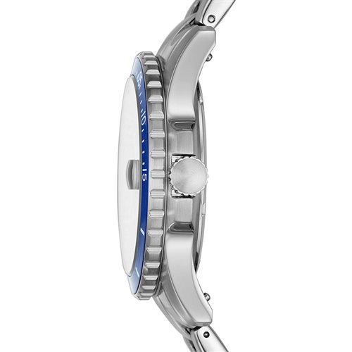 Orologio Con Cassa Di Forma Rotonda In Acciaio Inossidabile Di Colore Silver Con Finitura Mista. Misura Cassa: 42 Mm. Spessore Cassa: 12 Mm. Ghiera In Acciaio Inossidabile Silver Satinata. Colore Quandrate: Blu. Vetro Trasparente. Bracciale In Acciaio Inossidabile Silver Con Finitura Mista E Chiusura Deployante. Resistenza All'Acqua Di 10 Atm. Movimento Al Quarzo Con 3 Sfere.