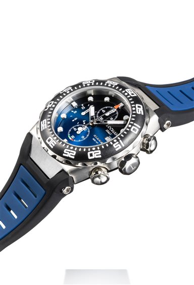 L‘orologio MARE 300MT rappresenta l’anima subacquea e sportiva di LOCMAN e si arricchisce, per la prima volta, dei contatori di ore, minuti e secondi, complicazioni che ne aumentano la tecnicità e che confermano gli alti standard qualitativi raggiunti da LOCMAN nell’ambito dell’orologeria subacquea. Mare 300MT si contraddistingue per la forte personalità e per il design deciso e funzionale, tipico di LOCMAN. Con una cassa di 44 mm in titanio e acciaio AISI 316L, è dotato di una ghiera girevole unidirezionale, che permette la misurazione delle immersioni indicando i tempi di permanenza in profondità e di risalita in superficie. Impermeabile fino a 300 metri (30 ATM), l’orologio è dotato di corona e pulsanti a vite, per evitare accidentali azionamenti in acqua e a garanzia quindi della massima impermeabilizzazione. Il quadrante, con indici applicati e la bandiera italiana posta a ore 6 è sormontato da un vetro minerale con trattamento zaffiro, che ne aumenta resistenza e trasparenza.